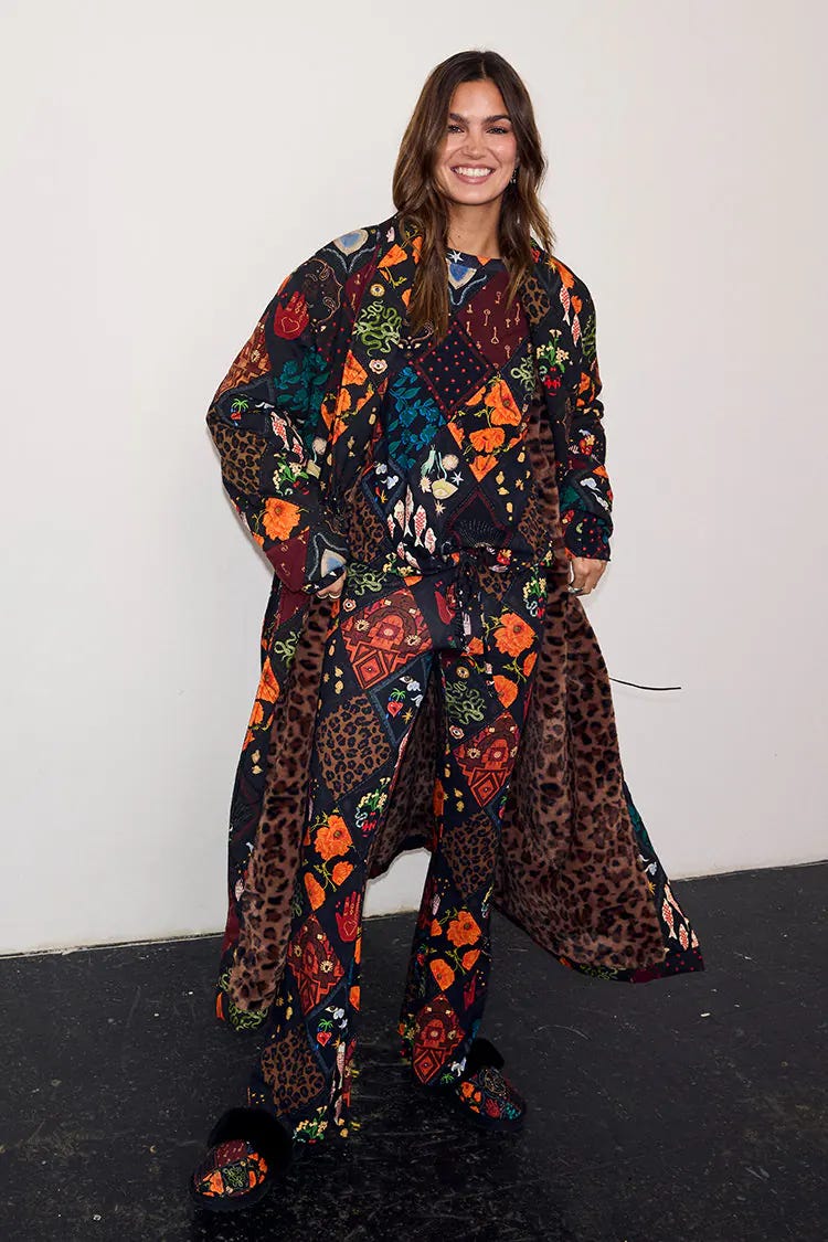 I’ve spent the l-o-n-g winter months dossing about in my navy fleece dressing gown, often with the hood up, like some kind of grim reaper. Now sick of the sight of myself, I’m determined to replace it with something chicer. I’m envisioning some kind of printed, velvet kimono like the below from Never Fully Dressed. It’s even reversible….